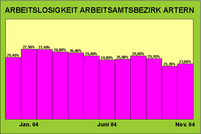 Die 25,8 % im Mai 2004 entsprechen 5756 Arbeitslosen, davon sind 2238 schon läger als 1 Jahr arbeitslos.