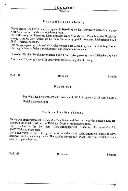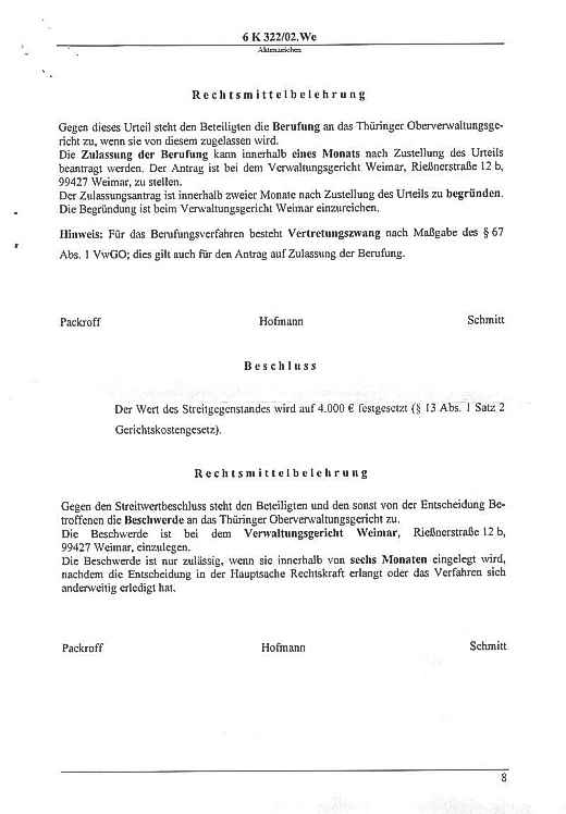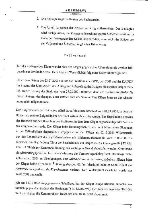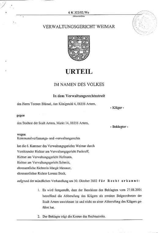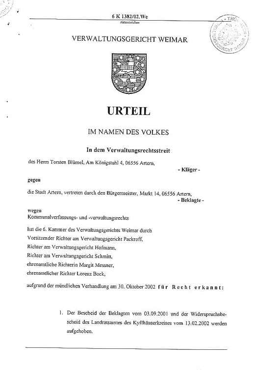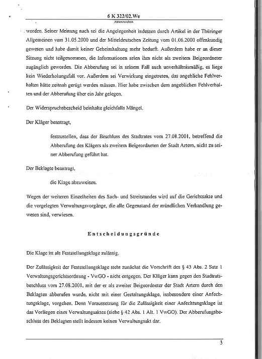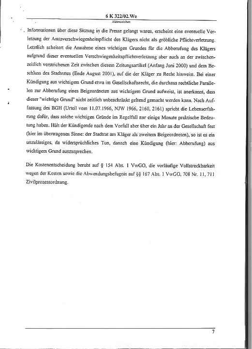 Klage gegen die Stadt - Urteil Seite: